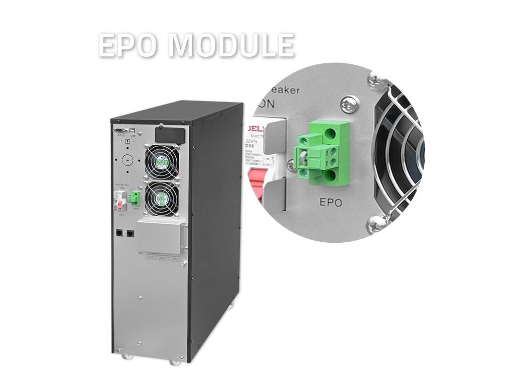 - EPO rozhraní - funkce umožňující dálkové vypnutí napájení v krizových situacích,