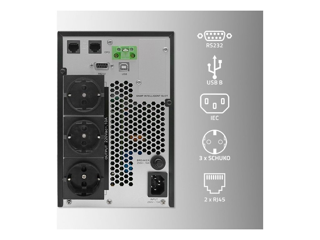 Nouzový zdroj UPS | 2kVA | 2000W | Faktor výkonu 1,0 | LCD | EPO | USB | On-line