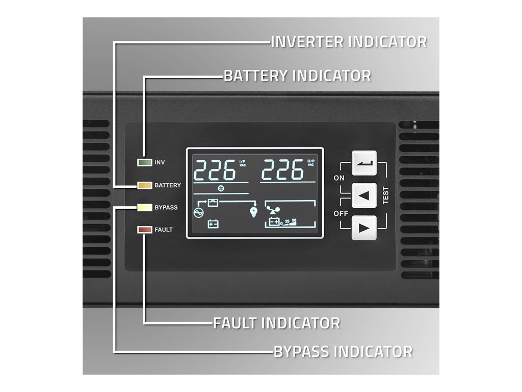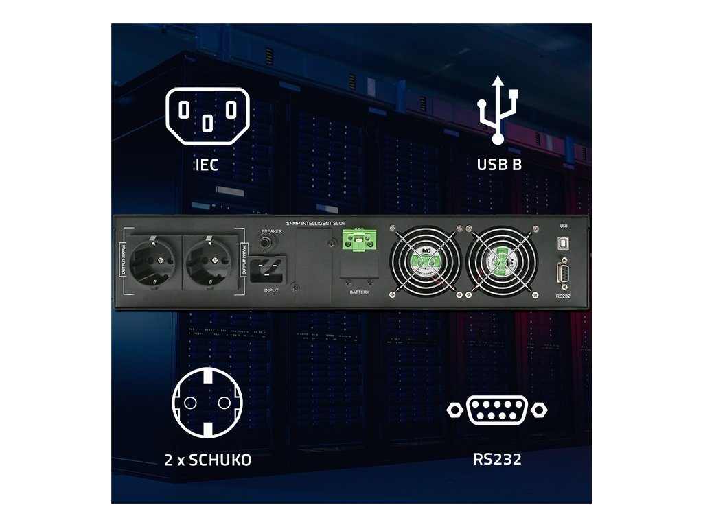 Nouzový zdroj UPS pro RACK | 2,4 kVA | 2400W | Faktor výkonu 1,0 | LCD | EPO | USB | On-line