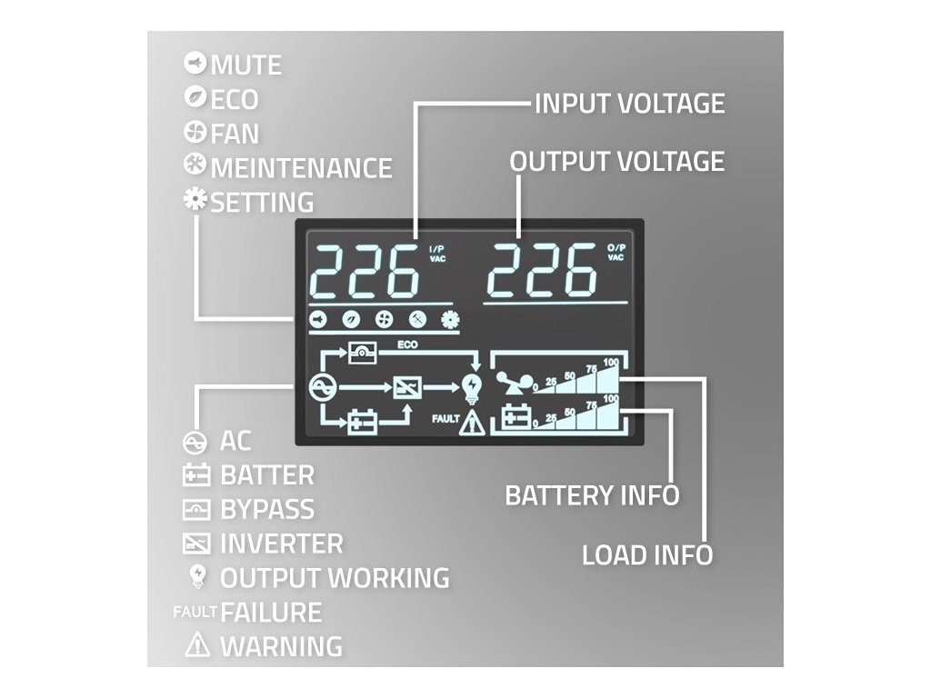 - ECO režim – poskytuje nejlepší rovnováhu mezi úsporou energie a ochranou napájení,