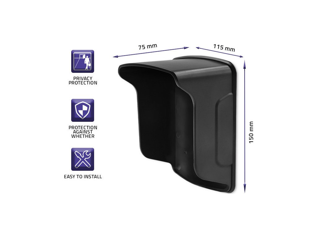 Ochranná stříška Qoltec je nejlepší způsob, jak správně chránit našeho čtenáře. Tento unikátní produkt chrání detektor nejen před nepříznivými povětrnostními podmínkami, ale chrání také před nečistotami a kontaminací. Velkou výhodou instalace tohoto typu ochrany je možnost bezpečně zadat bezpečnostní PIN kód bez obav z narušení soukromí neoprávněnými osobami. Ochranná stříška je také skvělou ochranou pro bezdrátový zvonek.
