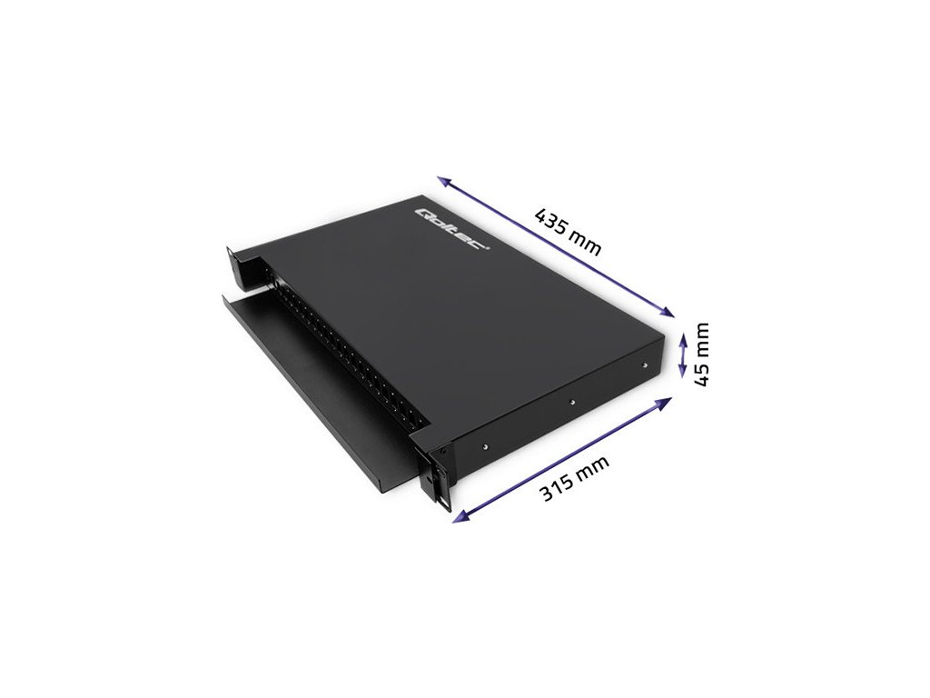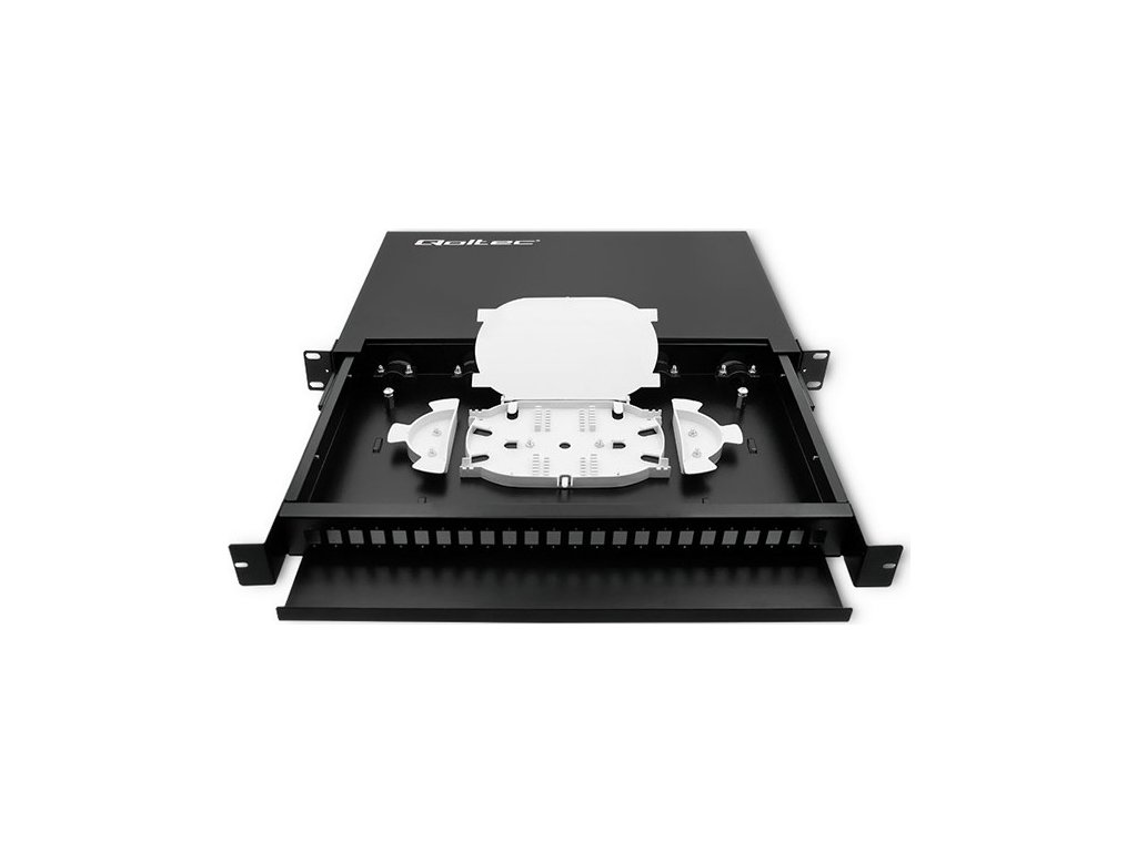 Rozvodná skříň z optických vláken Qoltec umožňuje ukončit a spravovat trasy optických vláken v 19” RACK skříni. Má spínací pole vybavené adaptéry, díky kterým můžete pomocí propojovacích kabelů připojovat a přepínat trasy optických vláken k aktivním zařízením.