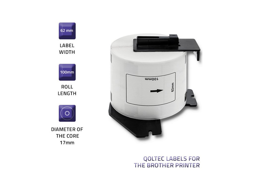 Páska pro BROTHER DK-11202 | 62 x 100 mm | 300 štítků | bílý/černý potisk | váleček s rukojetí