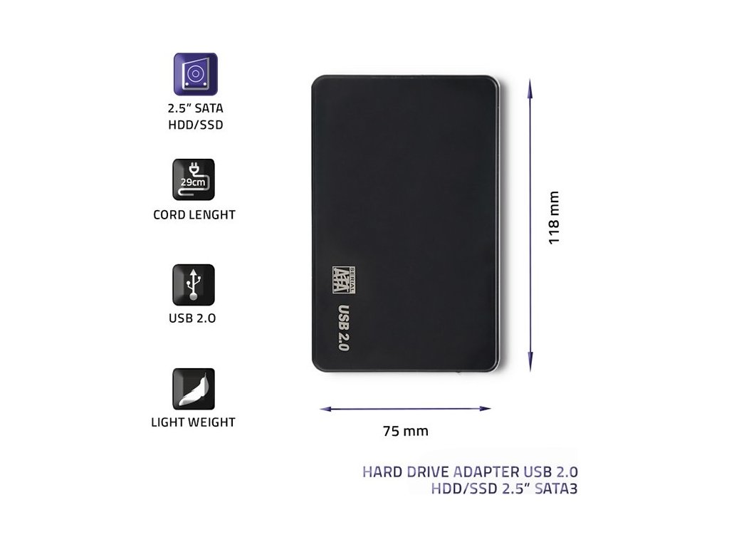 Pouzdro pro 2,5" HDD/SSD disky SATA3 | USB 2.0 | Černý