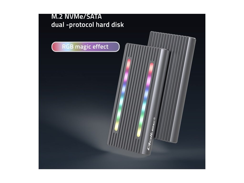 Pouzdro pro disk| M.2 SSD SATA | NVME | RGB LED | USB-C
