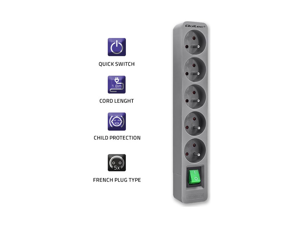Power strip | 5 zásuvek | 1,8 m | Šedá