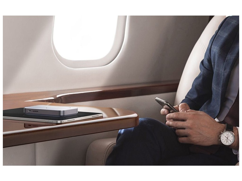Díky tenkému a kompaktnímu designu se powerbanka UGREEN pohodlně vejde do ruky nebo kapsy, díky čemuž si ji můžete vzít všude, kde potřebujete extra energii. Jeho chytrý design navíc znamená, že během bezdrátového nabíjení neblokuje čočku fotoaparátu, což znamená, že můžete fotoaparát svého chytrého telefonu volně používat i během nabíjení.