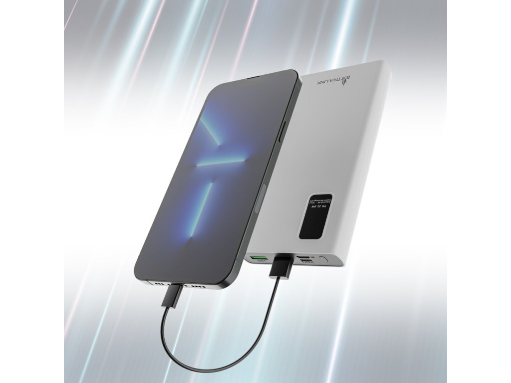 Powerbanka Extralink EPB-067W má dostatečnou kapacitu 10 000 mAh pro mnohonásobné dobití chytrého telefonu nebo tabletu. Díky vysokému nabíjecímu výkonu 22,5W Fast Charge celý proces zabere málo času.