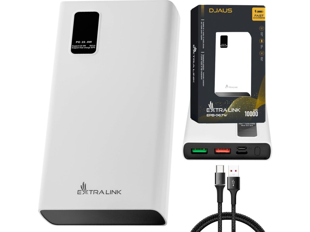 Powerbanka Extralink EPB-067W podporuje rychlé nabíjení až 22,5 W pomocí jediného portu. Vysoká kapacita 10 000 mAh postačí k mnohonásobnému dobití jednoho zařízení a uspokojí tak celodenní energetické nároky.