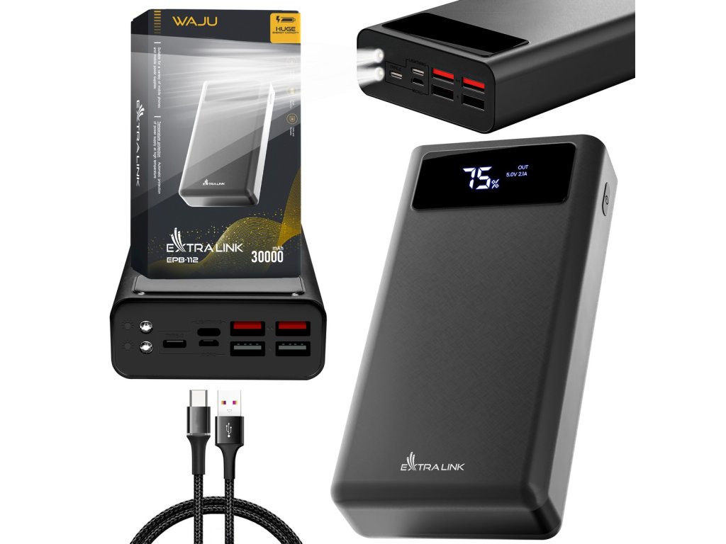 Powerbanka Extralink EPB-112 je kompaktní powerbanka za dostupnou cenu. Kapacita 30 000 mAh postačí k vícenásobnému nabití jednoho zařízení a čtyři výstupní porty umožňují nabíjet několik zařízení současně.
