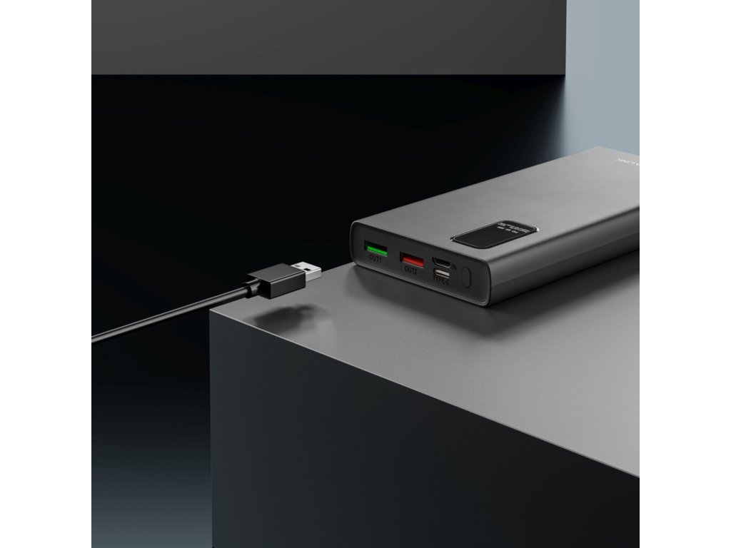 Powerbanka Extralink EPB-067B má dostatečnou kapacitu 10 000 mAh pro mnohonásobné dobití chytrého telefonu nebo tabletu. Díky vysokému nabíjecímu výkonu 22,5W Fast Charge celý proces zabere málo času.
