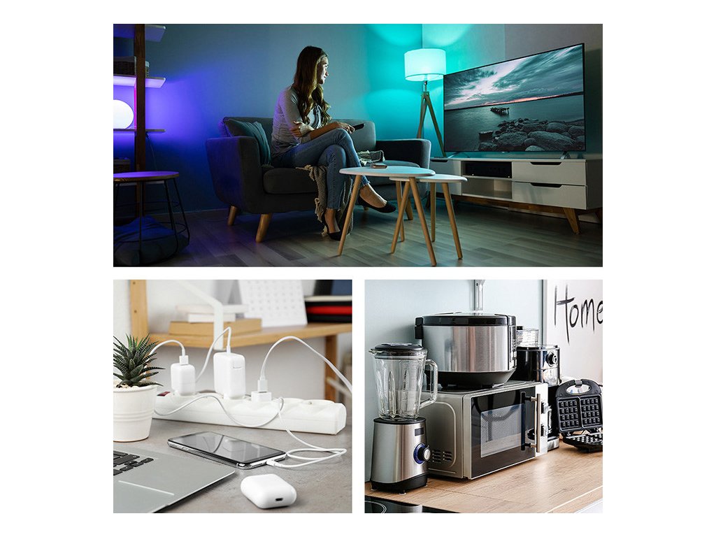 Napájecí kostka, navržená s ohledem na pohodlí uživatele, má ergonomické uspořádání 3 AC zásuvek po stranách krytu, což umožňuje snadné připojení ještě větších zástrček bez vzájemného blokování . Na přední straně najdete 2 USB-A porty a 1 USB-C PD 20W port, které jsou vždy po ruce pro rychlé nabíjení vašeho chytrého telefonu, tabletu nebo sluchátek – aniž byste museli sahat po samostatných nabíječkách. Máte doma spoustu kabelů a málo zástrček? Naše napájecí kostka vám umožní nabíjet telefon nebo jakékoli zařízení, aniž byste museli připojovat celou nabíječku.