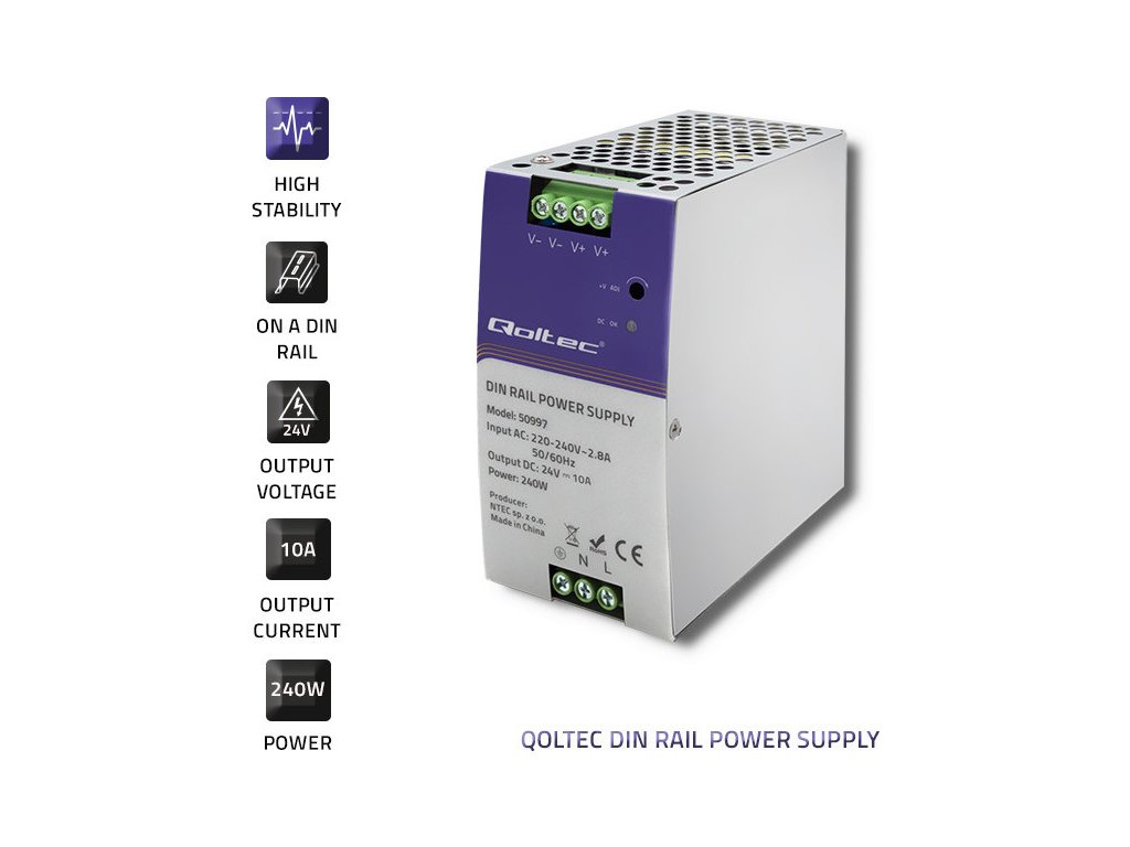 Zdroje Qoltec na DIN lištu jsou užitečným prvkem automatizačních systémů, řízení strojů, osvětlovací techniky a průmyslové elektroniky, kde je důležitá velikost napájecích zařízení a jejich přizpůsobení omezenému prostoru.
