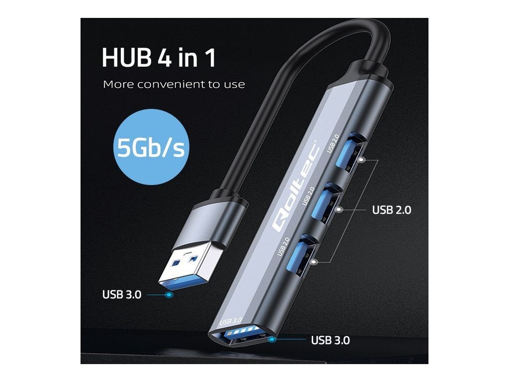 Qoltec Hub adaptér USB 3.0 4w1 | USB 3.0 | 3x USB 2.0