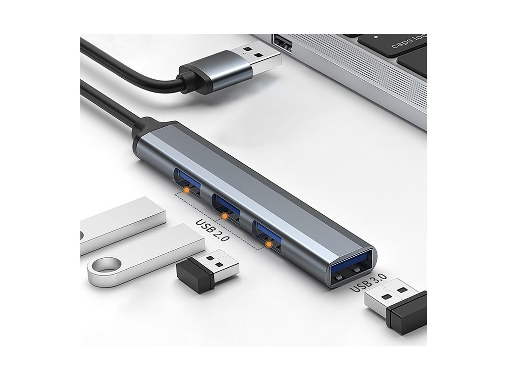 Připojte více zařízení současně a vychutnejte si rychlý a spolehlivý přenos souborů a bezproblémovou spolupráci mezi zařízeními. Náš rozbočovač vám umožní připojit k vašemu počítači další vybavení a příslušenství, jako jsou: myš, klávesnice, tiskárna, pendrive, přídavný monitor, projektor, sluchátka, reproduktory a mnoho dalších. S naším zařízením si nemusíte vybírat, které zařízení odpojíte, abyste připojili další. Hub vybaven portem USB 3.0 a 3 porty USB 2.0.
