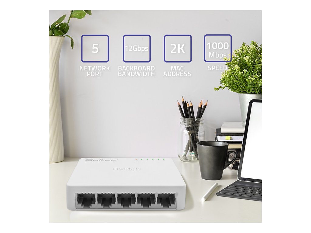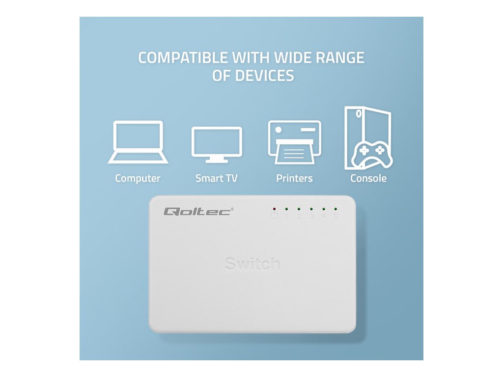 Qoltec SWITCH Síťový switch 5 x RJ45 port | 1000 Mbps | Rychlý Ethernet | LAN