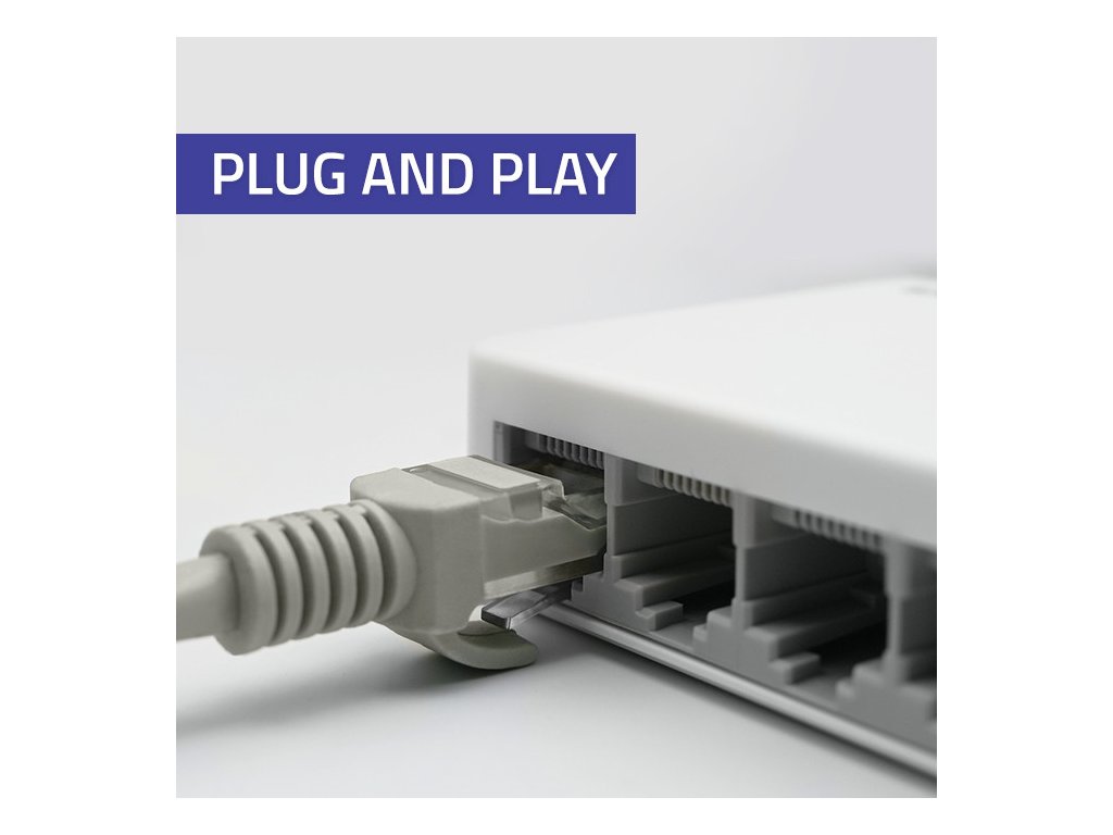 Naše zařízení nabízí okamžitou a bezproblémovou instalaci díky technologii Plug & Play, která nevyžaduje žádnou další konfiguraci ani technické znalosti. Stačí jen několik jednoduchých kroků. Nejprve připojte zařízení k příslušným portům RJ45 pomocí příslušných síťových kabelů a poté připojte jeden z portů ke směrovači nebo přístupovému modemu. Ujistěte se, že LED diody na přepínači indikují aktivitu na portech.