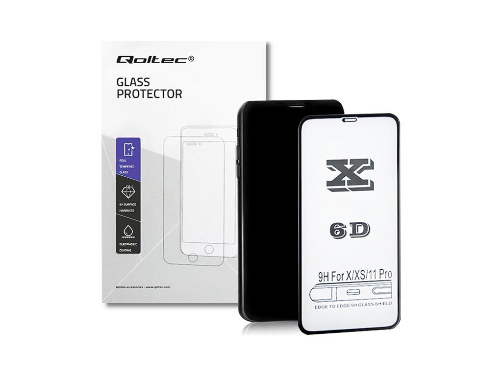 Qoltec Tvrzené ochranné sklo PREMIUM Apple iPhone 11 Pro | 6D | Czarne | Pełne