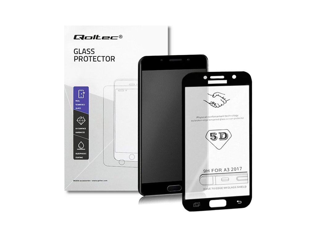 Qoltec Tvrzené ochranné sklo PREMIUM Samsung Galaxy A3 2017 | 5D | CZARNY | PEŁNE