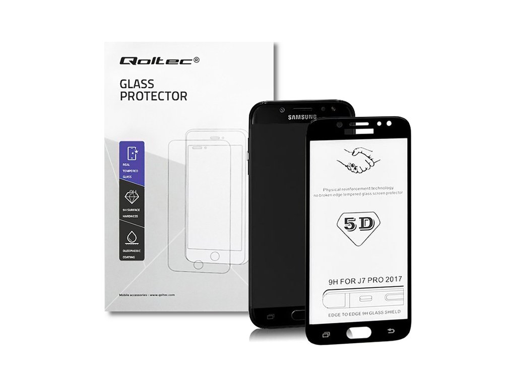 Qoltec Tvrzené ochranné sklo PREMIUM Samsung Galaxy J7 2017 | 5D | PEŁNE | CZARNY