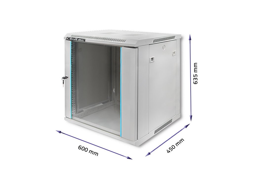 RACK skříňka 19" | 12U | 600 x 635 x 450 | Šedá | Závěsná