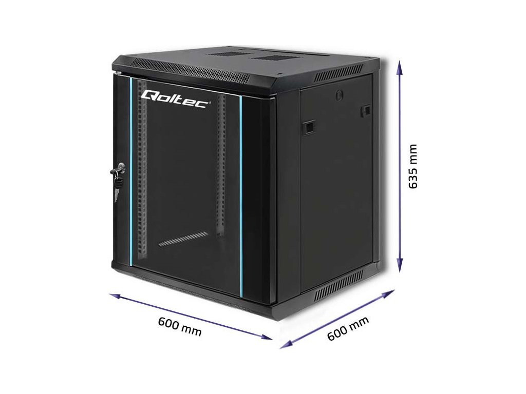 RACK skříňka 19" | 12U | 600 x 635 x 600 | Temperované dveře | Závěs | Ocelové pouzdro | Zámek | Černý