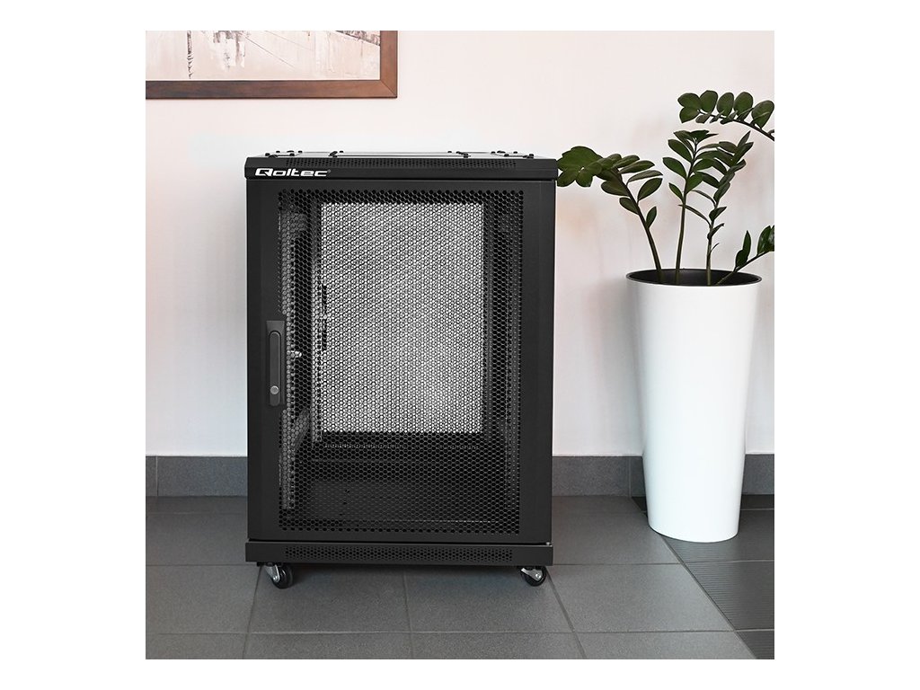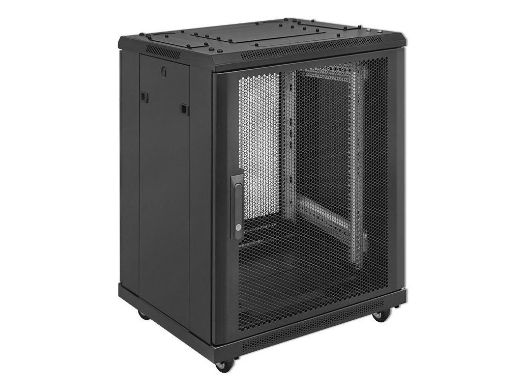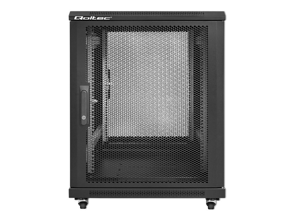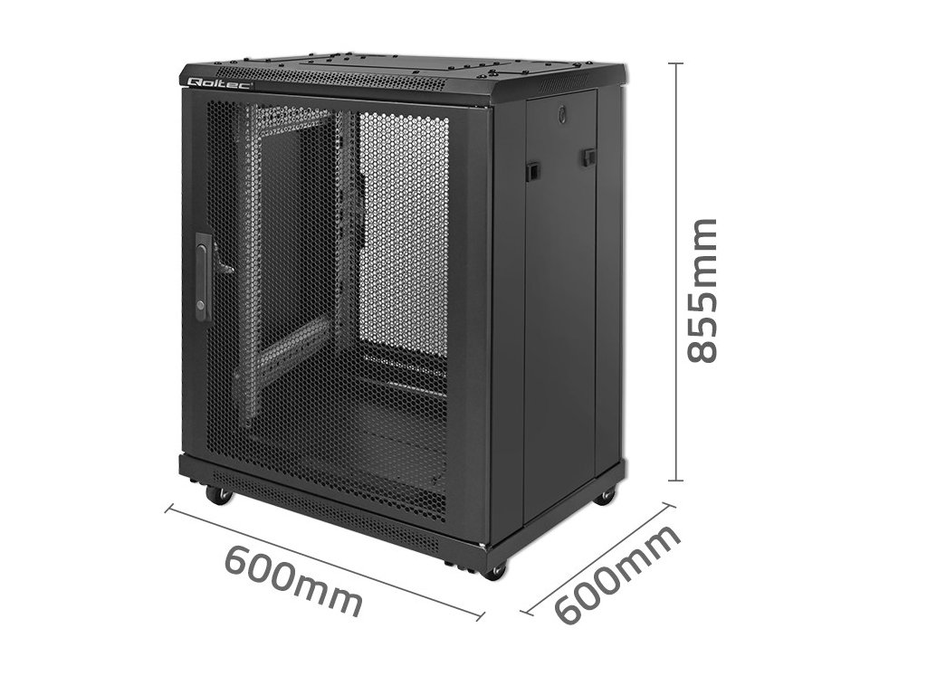 RACK Skříňka 19" | 15U | 600 x 600 x 855 | Perforované dveře | Volně stojící | Nohy + kolečka | Ocelové pouzdro | Zámek