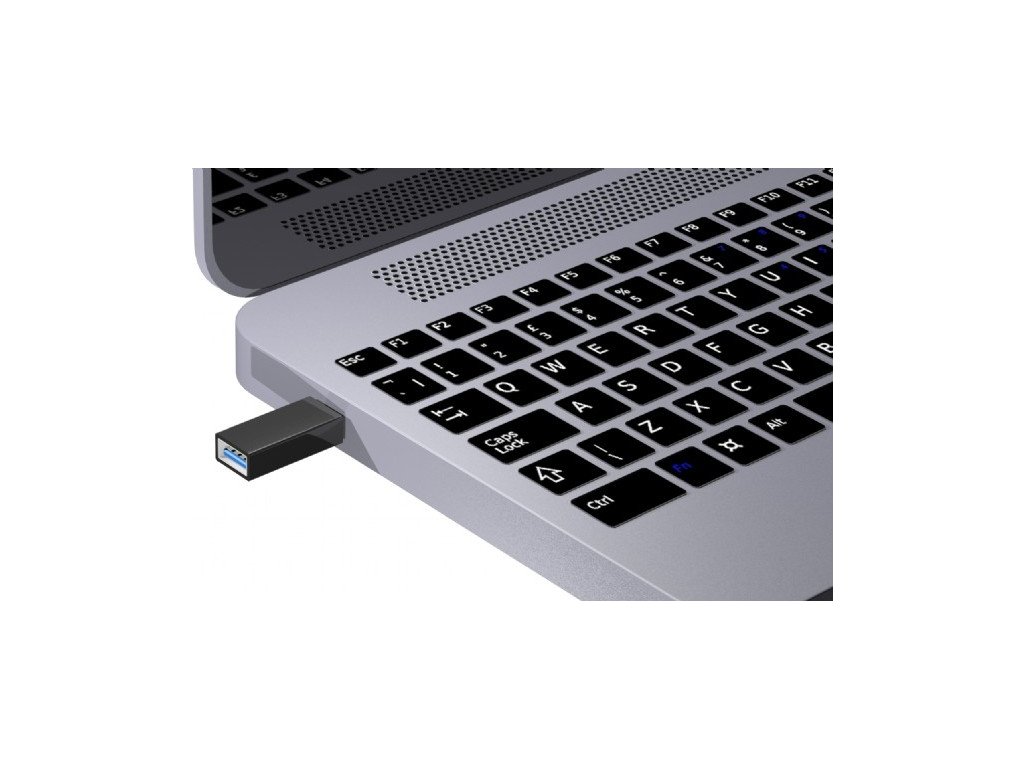 Jednoduše jej zapojte do volného USB-C portu a okamžitě získáte plnohodnotný port USB-A 3.0 , připravený k připojení všech vašich stávajících zařízení. Díky podpoře standardu USB 3.0 (také známého jako USB 3.1 Gen 1) můžete přenášet data rychlostí až 5 Gb/s , což je 10krát rychleji než u staršího USB 2.0. Kopírování velkých souborů, fotografií či videí tak potrvá jen zlomek času.