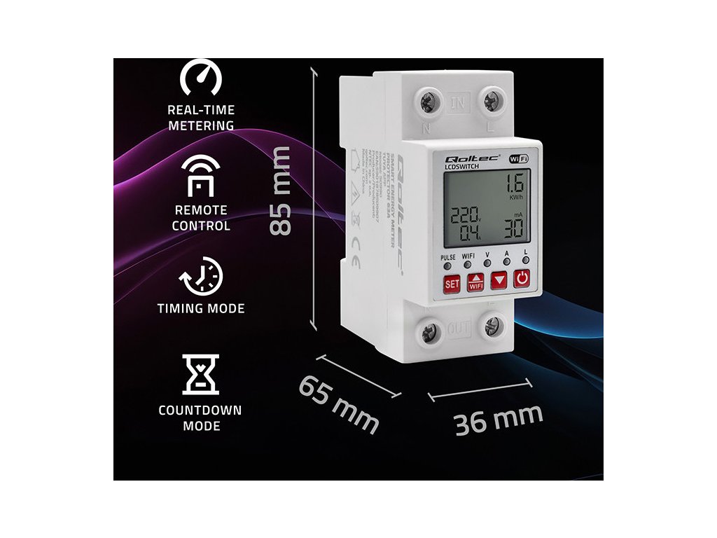 Komentář k produktu Relé 63A na DIN lištu s elektroměrem Qoltec | Časovač | Tuja | Wi-Fi | LED dioda