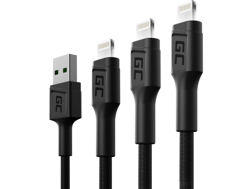 Sada 3 kabelů GC Ray USB - Lightning 30cm, 120cm, 200cm pro iPhone, iPad, iPod s podsvícením a rychlým nabíjením