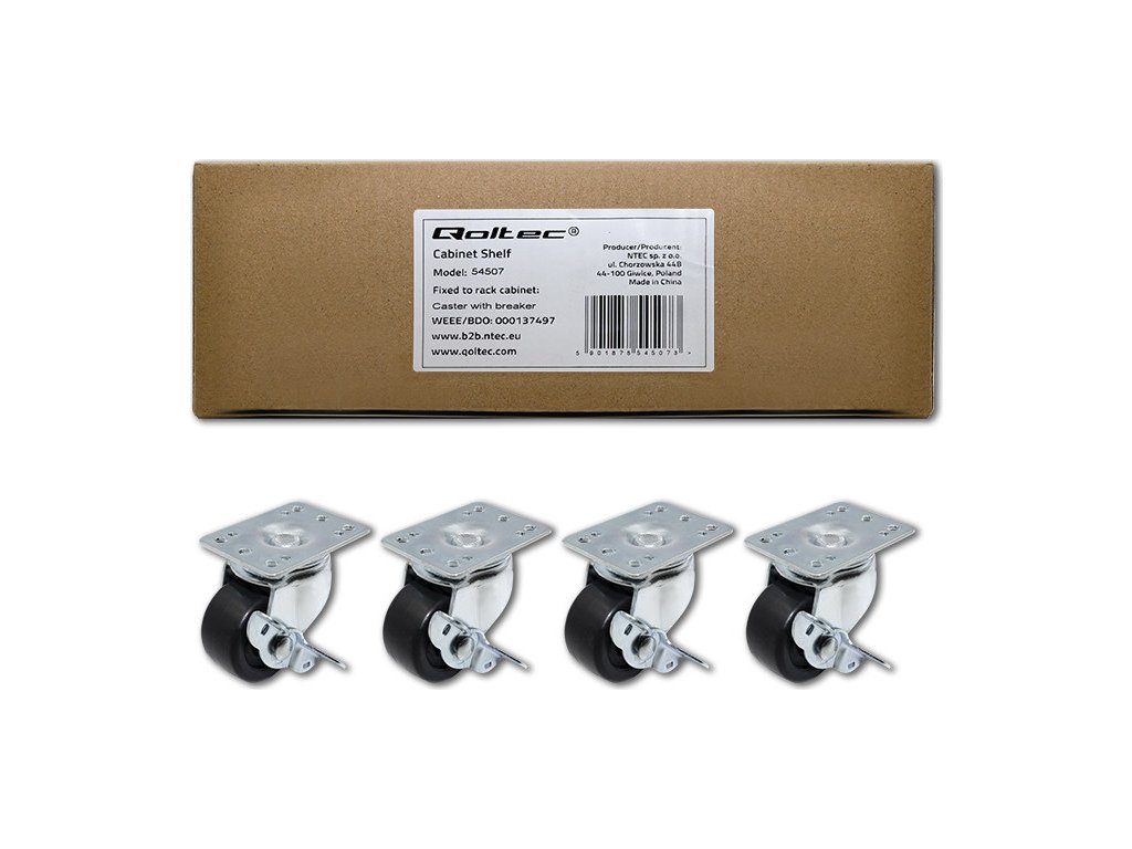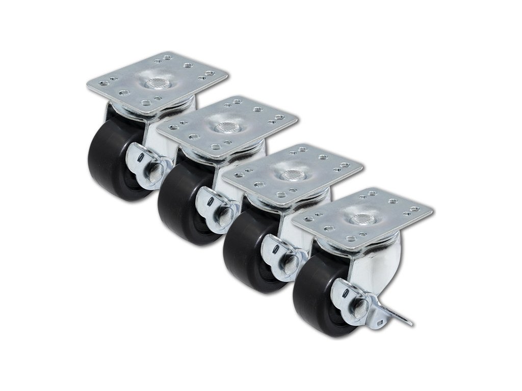 Námi nabízená funkční sada 4 otočných koleček s celkovou nosností 100 kg , vyrobená z odolných kovových slitin a plastu, vám umožní rychle a bezpečně přemísťovat rackovou skříň a zajistit její stabilní polohu . Uchycení transportních kol jednodílným přišroubováním do otvorů v ocelové konstrukci .
