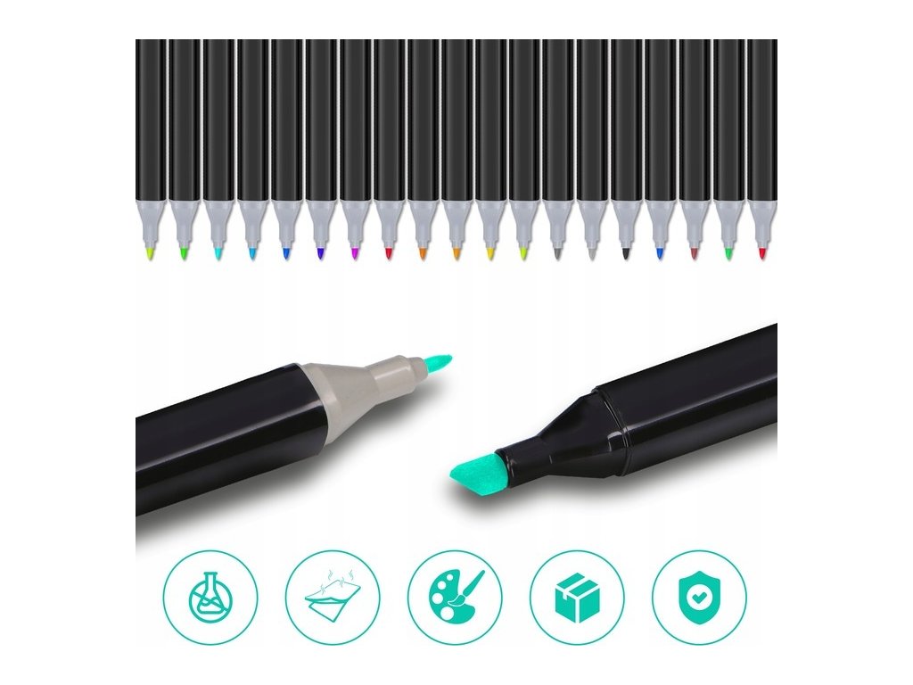 Objevte nekonečné tvůrčí možnosti s dvojitou soupravou profesionálních alkoholových fixů! Nabízíme dvě soupravy po 60 oboustranných fixech, což představuje celkem 120 barev, uložených v praktické tašce pro snadné skladování a přenášení. linií a intenzivní, syté barvy, vyrovnající se kvalitou renomovaným značkám, jako jsou Copic a Prisma.