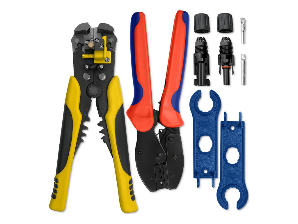 Sada solárního nářadí kompatibilního s konektory MC4 | Krimpovací stroj + Automatický odstraňovač izolace