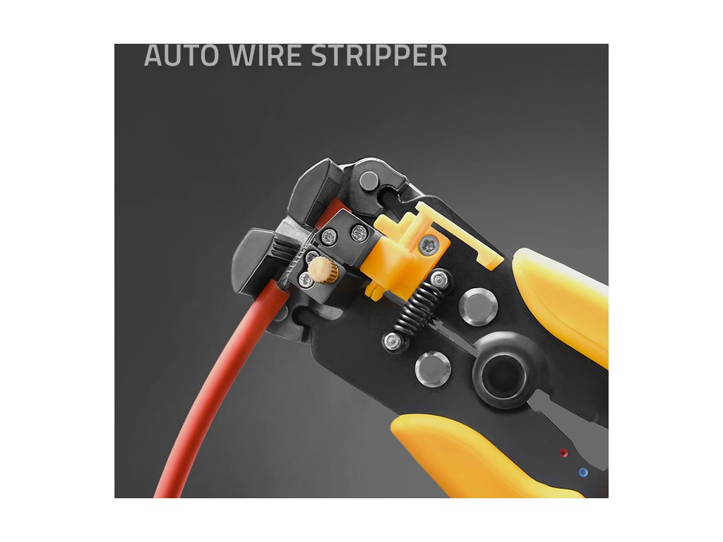 Automatický odstraňovač izolace je velmi praktický nástroj určený k odstraňování izolace z jednožilových vodičů o průměru 0,5 - 6 mm² (24-10 AWG) nebo vícežilových vodičů , automatické přizpůsobení průřezu kabelu. Má odrazovou pružinu, která výrazně odlehčí ruku a usnadňuje práci. Základními funkcemi tohoto nástroje jsou odizolování, krimpování konců drátů a přesné stříhání .
