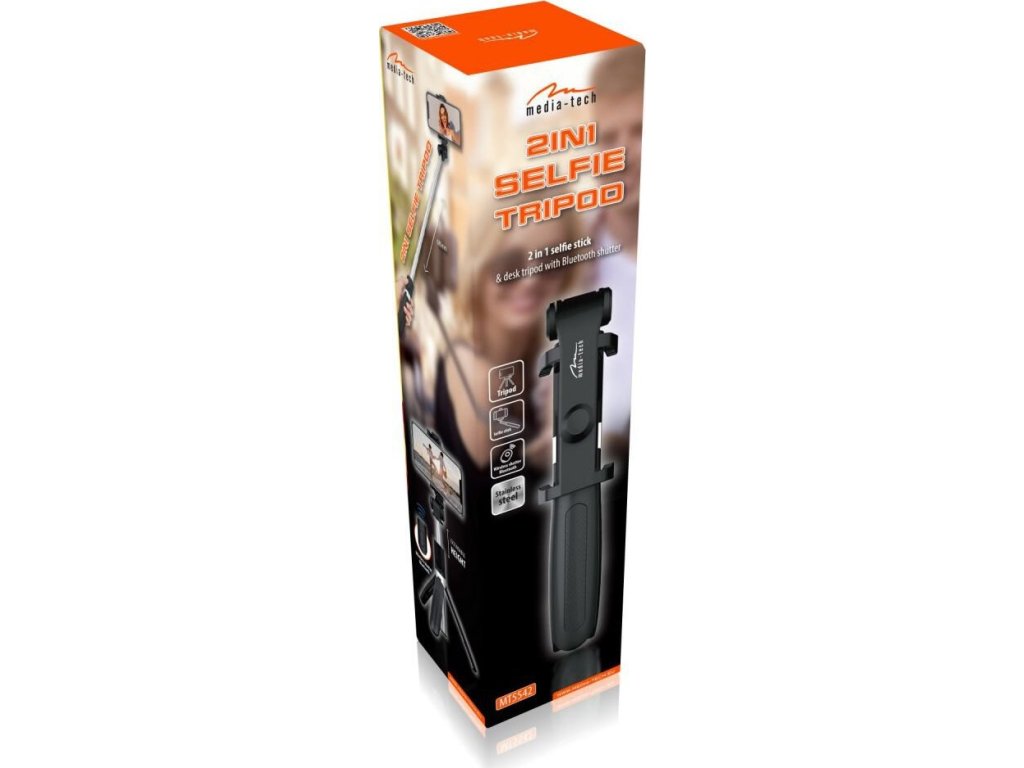 Selfie Stick + držák na stativ 2v1 Bluetooth dálkové ovládání Media-Tech MT5542