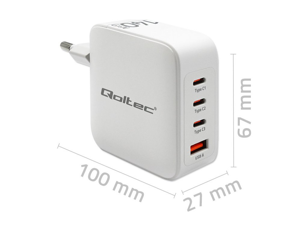 Nabíječka Qoltec je vybavena nejnovější nabíjecí technologií GaN, která zahrnuje použití nového polovodičového materiálu , nitridu galia . V závislosti na typu nabíjeného zařízení vybere nabíječka vhodné napětí a proud v závislosti na parametrech baterie , čímž ji chrání před přehřátím.