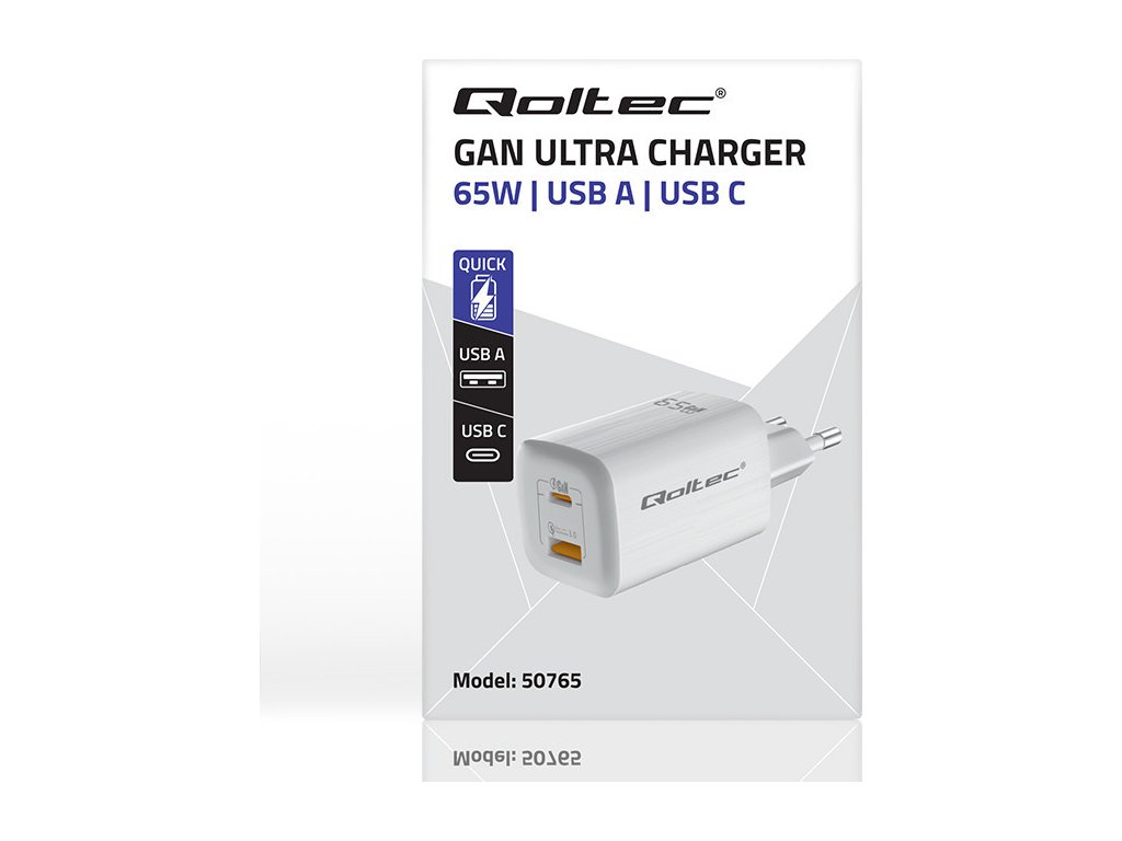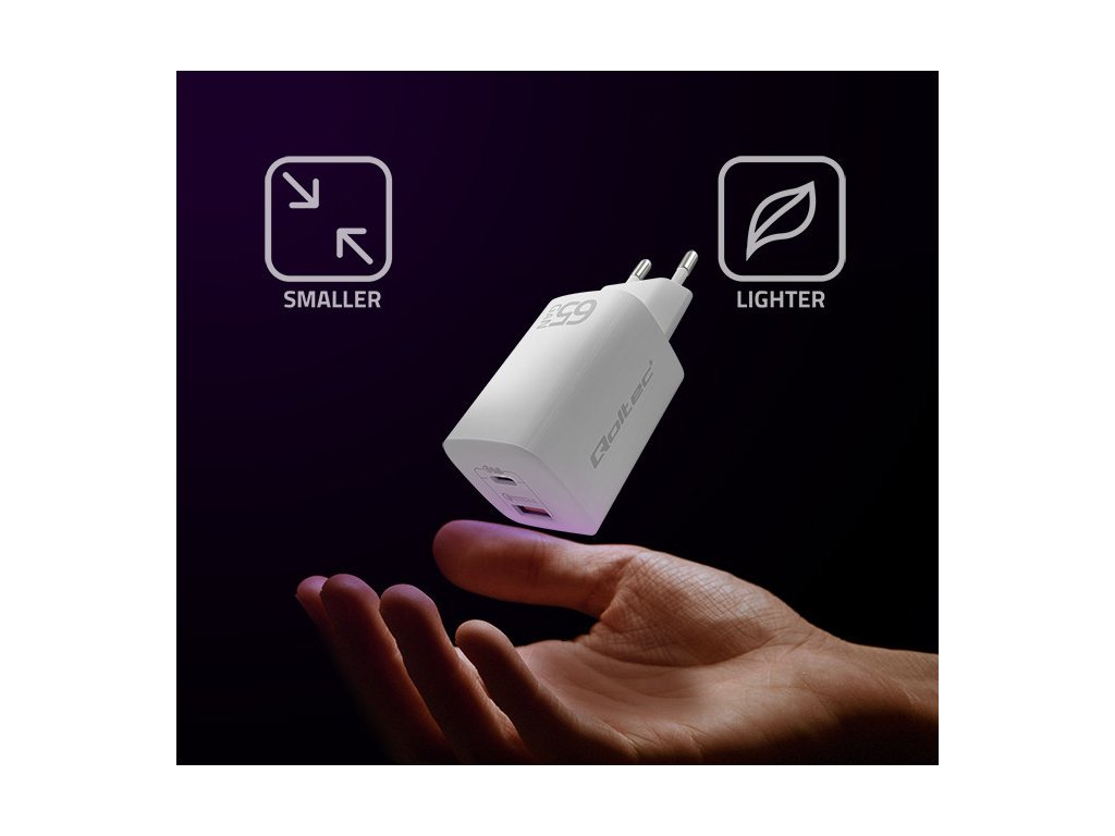 Nabíječka Qoltec je vybavena nejnovější nabíjecí technologií GaN, která zahrnuje použití nového polovodičového materiálu , nitridu galia . V závislosti na typu nabíjeného zařízení si nabíječka zvolí vhodné napětí a proud v závislosti na parametrech baterie , čímž ji ochrání před přehřátím.