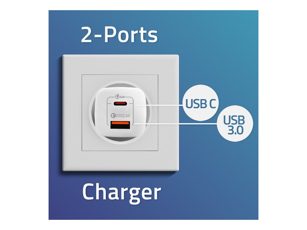 Naše nabíječka dokáže nabíjet 2 zařízení současně , přičemž přesně nastaví maximální napětí a proud, přizpůsobí se parametrům baterie připojeného zařízení. Toto výjimečně funkční zařízení dokáže nabít baterii na přibližně 60% již za 30 minut. Nabíječka podporuje standard USB-C POWER DELIVERY a má port USB-A kompatibilní s technologií Qualcomm Quick Charge 3.0 .
