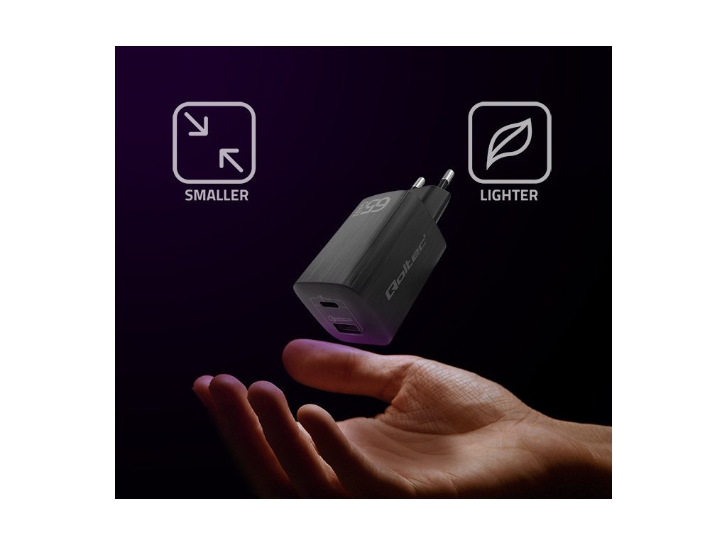 Nabíječka Qoltec je vybavena nejnovější nabíjecí technologií GaN, která zahrnuje použití nového polovodičového materiálu , nitridu galia . V závislosti na typu nabíjeného zařízení si nabíječka zvolí vhodné napětí a proud v závislosti na parametrech baterie , čímž ji ochrání před přehřátím.