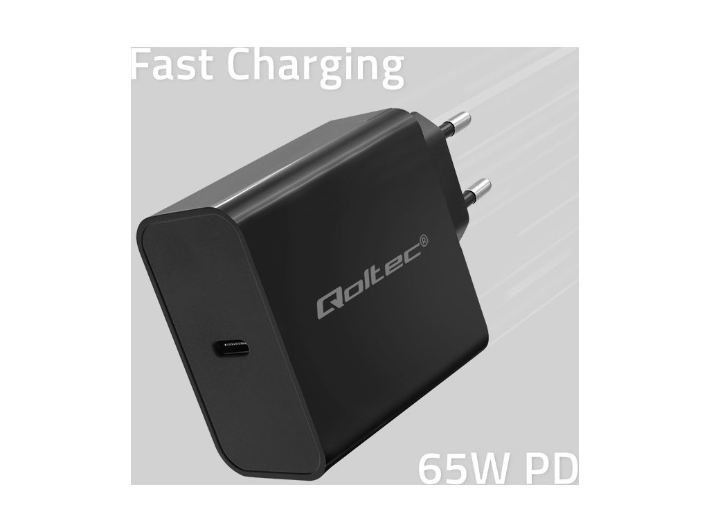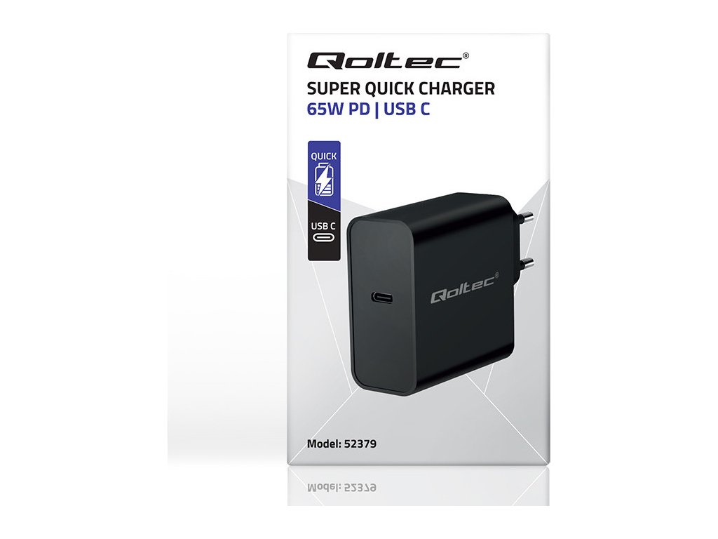 Síťová nabíječka Super Quick PD | 1x USB-C | 65W | 5-20V | 3-3.25A | Černá