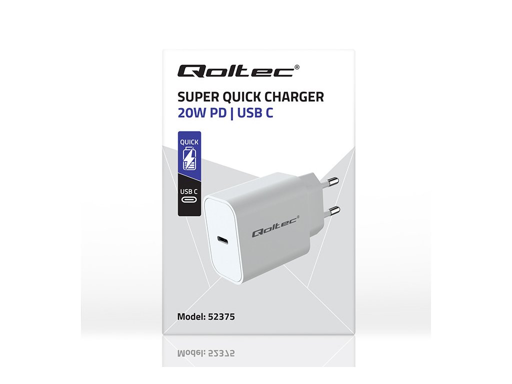 Síťová nabíječka Super Quick PD | USB-C | 20W | 5-12V | 1.67-3A | Bílá