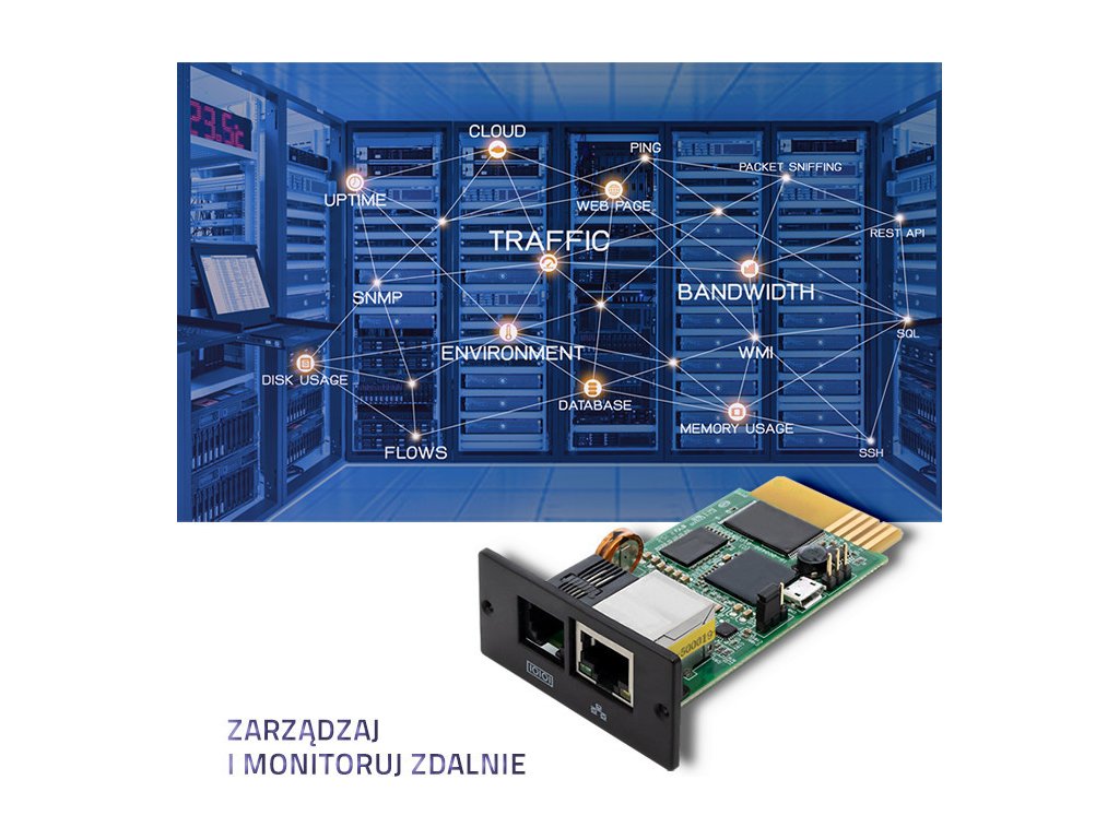 Správné parametry a nepřetržitý provoz zdroje nepřetržitého napájení jsou mimořádně důležité, prezentované příslušenství vám umožní ovládat a řídit provoz UPS na dálku. Vše co potřebujete je připojení k lokální síti nebo internetu. Instalací SNMP modulu se výrazně rozšíří možnosti rychlé reakce v případě poruchy nebo jiné hrozby vyplývající z výpadků v práci.