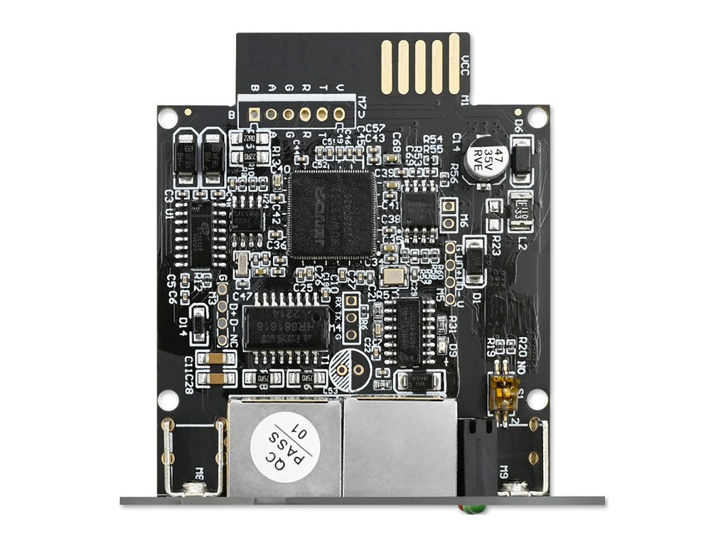 Díky integrovanému síťovému přístupu můžete využít internetové možnosti SNMP karty pro vzdálené programování nebo vypínání UPS jednotek. SNMP umožňuje efektivní správu napájecích zdrojů UPS, zvyšuje bezpečnost IT systémů a umožňuje lepší využití zdrojů. Zkontrolujte úroveň nabití baterie, vstupní a výstupní napětí, teplotu a zatížení – to vše z jednoho intuitivního rozhraní.