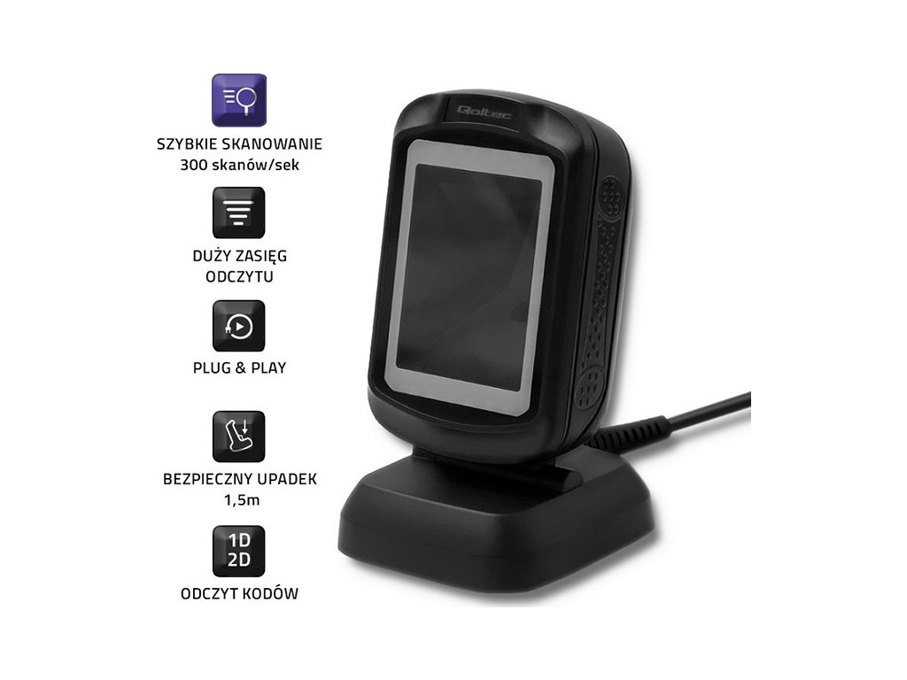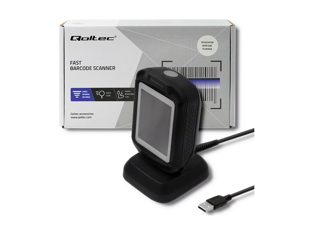 Stacionární čtečka čárových kódů Qoltec je rychlá, přesná a extrémně snadno se používá. Čtečka je navíc kompatibilní s mnoha zařízeními a standardy . jedním kliknutím potvrdíte načtení informací zakódovaných v kódu.