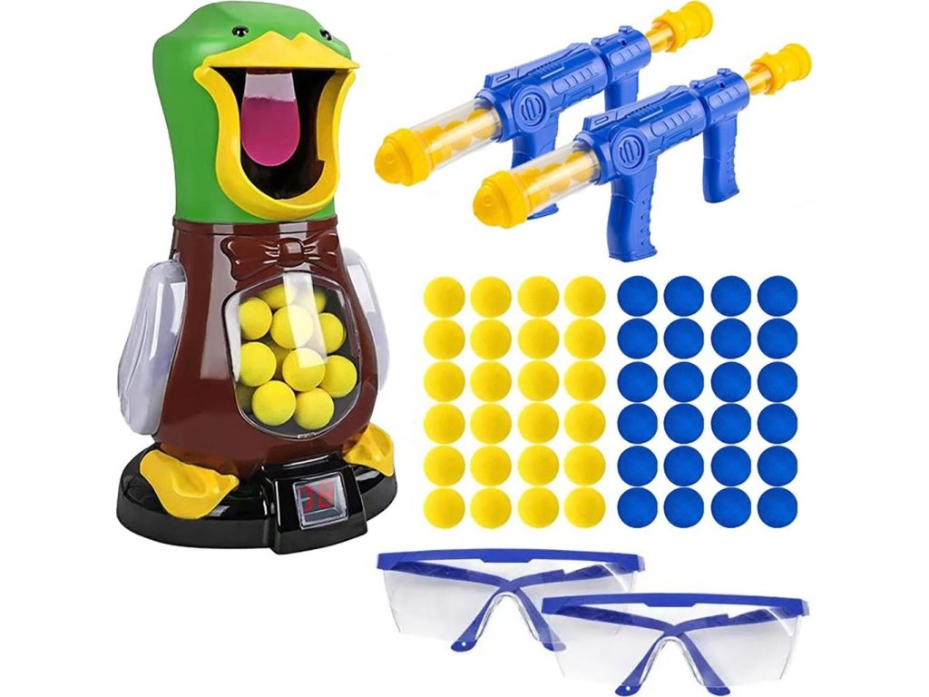 Souprava Hungry Duck: Target Shooting obsahuje vše, co potřebujete, abyste mohli začít hned hrát. také prioritou, a proto sada obsahuje ochranné brýle, které poskytují plnou ochranu při hře.