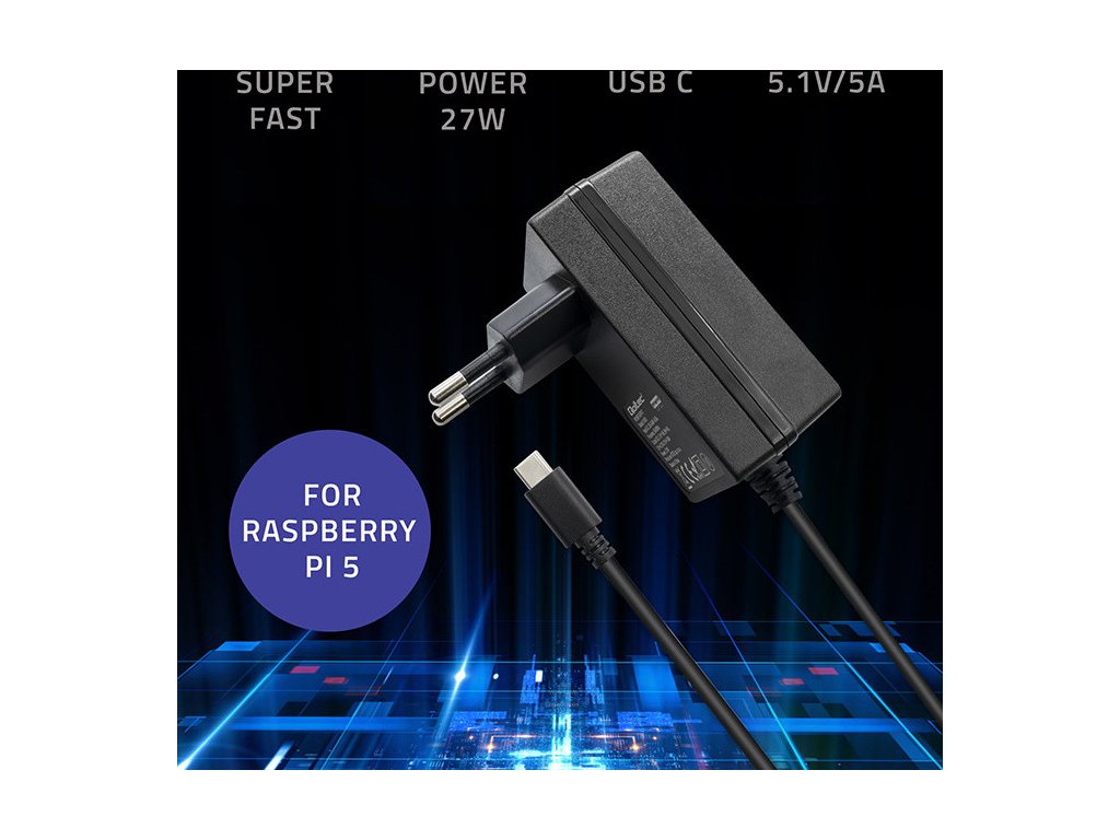 Super FAST PD nabíječka pro Raspberry PI 5 | USB-C | 27W | 5,1V | 5A | Černá