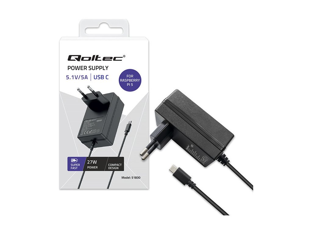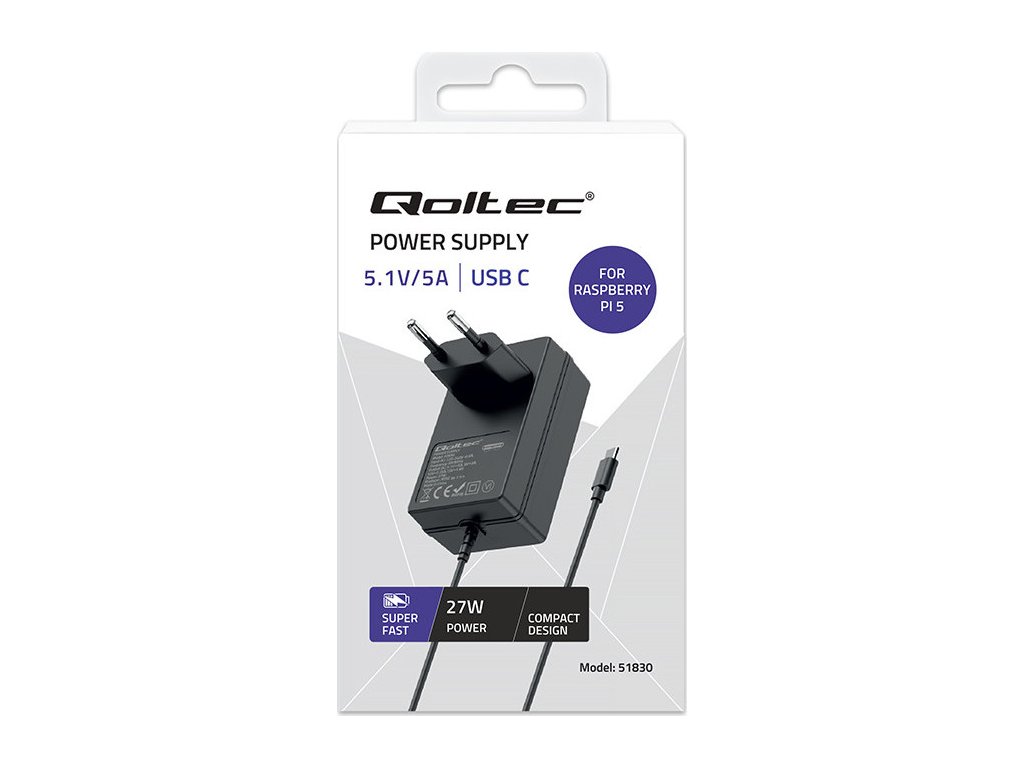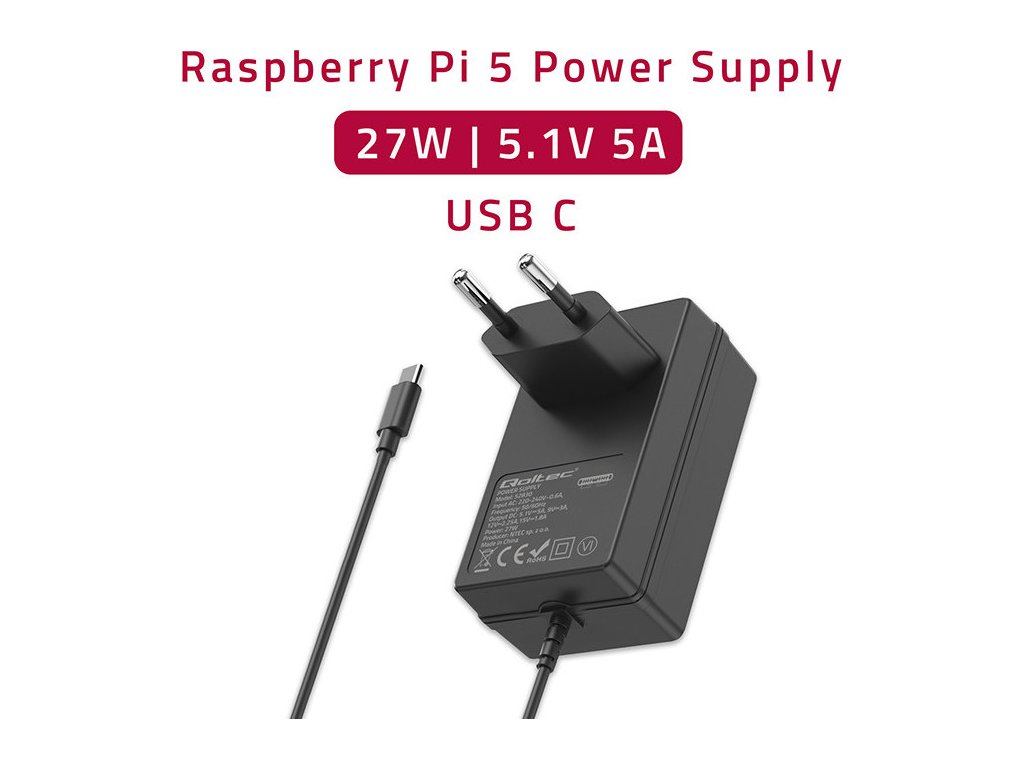 Naše nabíječka určená pro Raspberry Pi 5 využívá standardu Power Delivery pro efektivní řízení napájení, i když je připojeno množství příslušenství, jako jsou externí disky, kamery, klávesnice nebo displeje. Umožňuje poskytnout Raspberry Pi5 přesně požadovaných 27W, což zajišťuje stabilní provoz i při velkém zatížení . Power Delivery je univerzální standard, což znamená, že nabíječku lze použít s mnoha různými zařízeními s USB-C konektorem – od chytrých telefonů, přes tablety, až po počítače a Raspberry Pi.