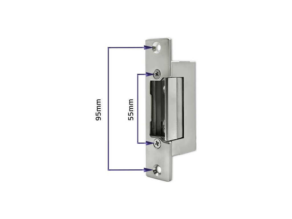 - Zámkem - elektrické otevírání má mechanický spínač , který lze nastavit jako ZAVŘENO , funguje jako elektromagnetický zámek a vyžaduje elektrický impuls k uvolnění zámku nebo OTEVŘENO - dveře jsou trvale otevřené,