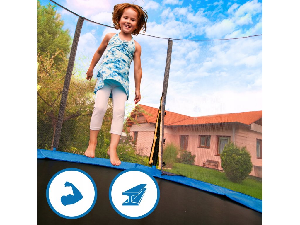 Kvalita a odolnost: Trampolína Extralink 12FT se vyznačuje vysokou kvalitou zpracování . Lesklá bezpečnostní podložka dodává trampolíně nejen eleganci, ale také pevnost. Rámová konstrukce z pozinkované oceli zaručuje odolnost a bezpečnost. S průměrem 366 cm a výškou 250 cm nabízí dostatek prostoru pro skákání a zábavu.