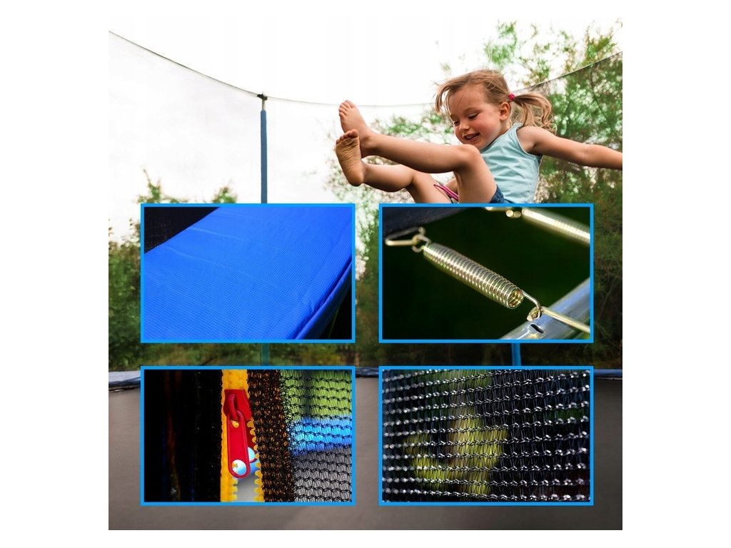 Bezpečnost na prvním místě: Bezpečnost dětí je při hře na trampolíně klíčová. Extralink 12FT je proto vybavena bezpečnostní sítí s pohodlným zipem pro snadný vstup a zavírání. Síť je navržena tak, aby minimalizovala riziko pádů a zranění . Maximální zatížení trampolíny je 350 kg . Pružiny jsou kryty ochranným krytem , který brání přímému přístupu k nim a zvyšuje tak bezpečnost. Součástí balení je i žebřík pro pohodlný nástup a výstup .